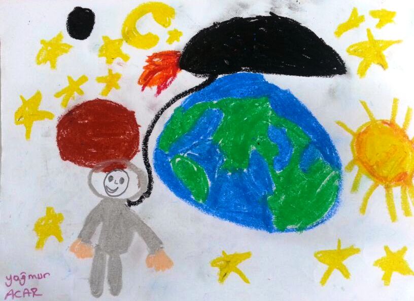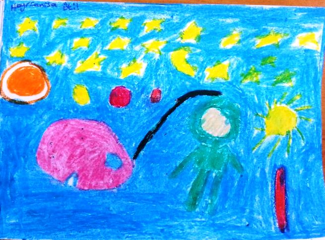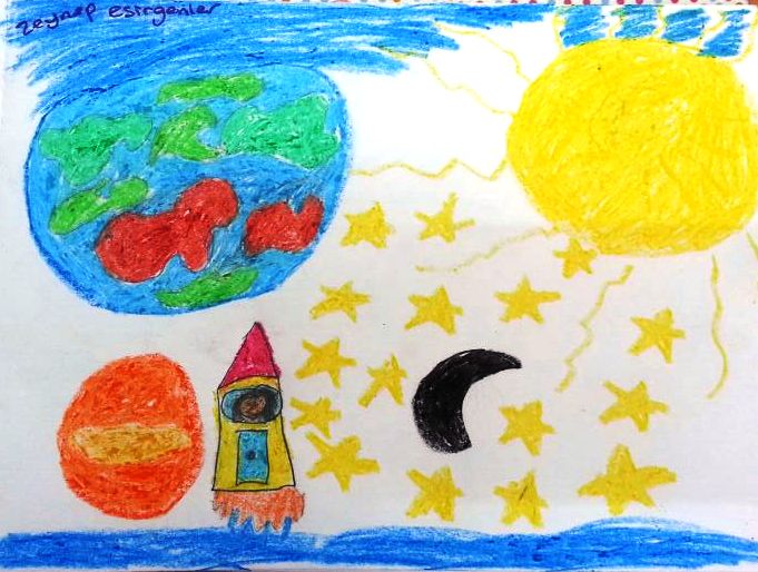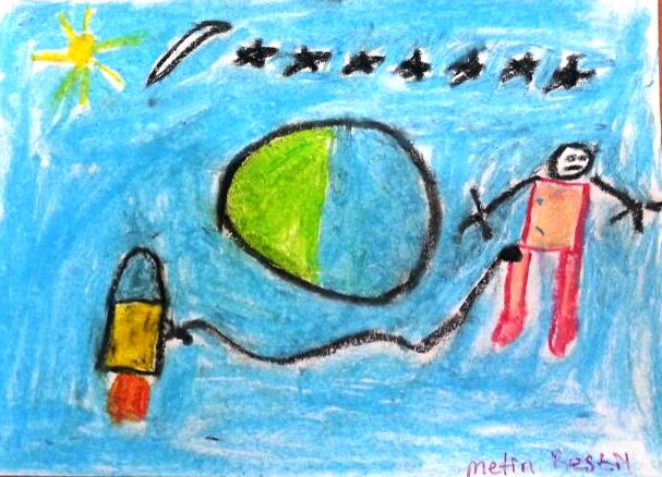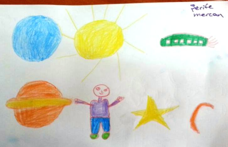 E-posta adresimize bu haftasonu çok özel bir mesaj geldi. Ekinde bulunan minik sanatçı ellerden çıkmış bir çok güzel resim ve not hepimizi sevindirdi ve öğrencilerimizle gurur duyduk. Resim ve notlar ilköğretim öğrencileri tarafından hazırlanmış ve adeta “biz de bu uzaya çok uzak değiliz” mesajı verilmişti.