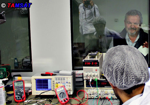 The final touches are nearly being completed for “TURKSAT–3USAT” LEO Communication Satellite, to be placed in its 680 Km orbit in May,2013. As defined by the program; V/U TRANSPONDER’s designed and produced by AMSAT-TR; have been pre tested before the integration phase, in Istanbul Technical University (ITU) – Space Systems Design and Test Laboratuary (USTTL) and we are invited to participate this test. A.Tahir DENGIZ, TA2T, President and Baris DINC, TA7W Vice President were at the Laboratuary in February, 09 th,2013.
