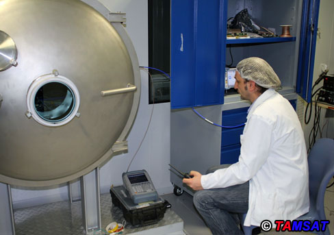 The tests will start when the pressure in the TVAC Chamber drops to 10-3 Pascal, and it took 5 hours. This is a long time for Baris, TA7W as you see in Fig.6.